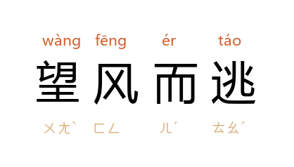 ⒈ 遥见敌人的踪影或气势就吓得逃跑了。明·梁辰鱼也作「望风而遁」、「望风而走」。