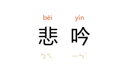 引三国 魏 繁钦 《与魏文帝笺》:“暨其清激悲吟,杂以怨慕,咏北狄之遐征,奏胡马之长思。”晋 左思 《招隐诗》之一:“何事待啸歌,灌木自悲吟。”唐 白居易 《咏怀》:“长笑 灵均 不知命, 江 篱丛畔苦悲吟。”