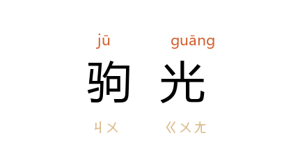 ⒈ 驹,骏马。驹光指骏马跑得很快,如光一闪即逝。比喻极短暂的光阴。
