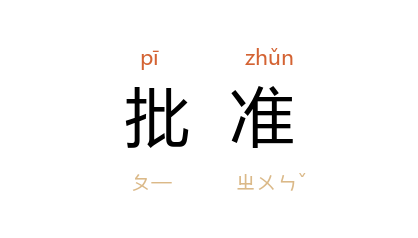 ⒈ 见“批准”。亦作“批準”。上级对下级的意见、建议或请求表示同意。
