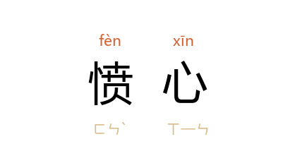 引《晋书·宣帝纪论》:“既而拥众西举,与 诸葛 相持。抑其甲兵,本无鬭志,遗其巾幗,方发愤心。”康有为 《读<史记·刺客传>》诗:“迁 史愤心尊 聂政,泉明 诗咏慕 荆軻。”