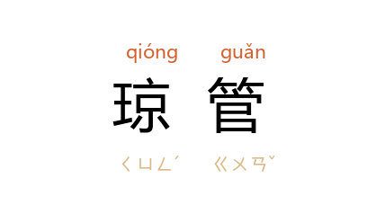 引唐 刘允济 《经庐岳》诗:“池榭宣琼管,风花乱珠箔。”明 宋濂 《傅同虚像赞》:“岂非长跨於 洞庭 之野,吹琼管而招飞仙者耶?”清 陈维崧 《月下笛·本意》词:“念奴璚管碎,把画梁尘劈。”