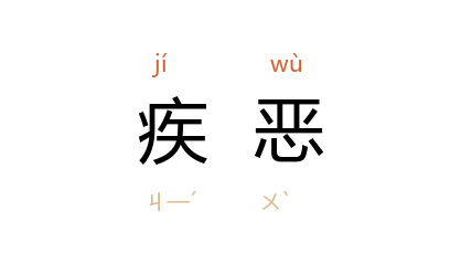 ⒈ 痛恨恶人或坏事。元·尹廷高〈悲故乡集杜诗句〉二首之二:「望乡应未已,疾恶信如雠。」也作「嫉恶」。