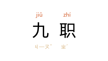 引《周礼·天官·大宰》:“﹝ 周 ﹞以九职任万民:一曰三农,生九穀;二曰园圃,毓草木;三曰虞衡,作山泽之材;四曰藪牧,养蕃鸟兽;五曰百工,飭化八材;六曰商贾,阜通货贿;七曰嬪妇,化治丝枲;八曰臣妾,聚歛疏材;九曰閒民,无常职,转移执事。”