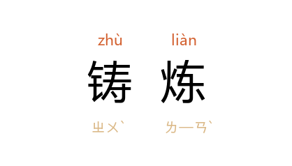 引瞿秋白 《饿乡纪程》二:“我的心性,在这几几乎类似游民的无产阶级的社会地位中,融陶铸炼成了什么样子,我也不能知道。”《诗刊》1977年第9期:“诗句的奇思妙想,并非上不着天,下不着地的想入非非,而是观察、体验、分析的生活资料,铸炼而为准确、鲜明、生动的诗句。”