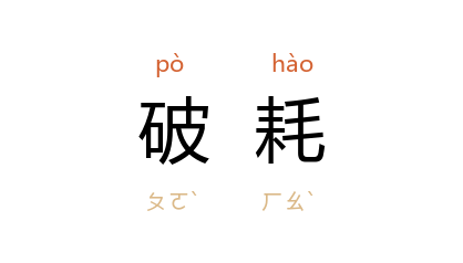 引《元典章·户部八·盐课》:“每引带席索通秤四百一十觔,出场袋法之外餘有十觔,以在舡坐仓滷折耗内诸仓破耗六觔,监运破耗四觔。”《水浒传》第八一回:“他这等破耗钱粮,损折兵将,如何敢奏?”《醒世恒言·两县令竞义婚孤女》:“南唐 法度,凡官府破耗军粮至三百石者,即行处斩。”