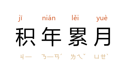 亦作“积岁累月”、“积年累岁”。 宋 魏了翁 《直前奏六未喻及邪正二论》:“夫充数备员,而不能以伸其壮行之欲,其势必将以不得其识而去,则又积岁累月,牢乱固拒,必使之邪正杂揉,心迹莫明。”