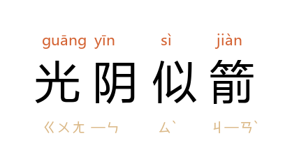 引《京本通俗小说·菩萨蛮》:「光阴似箭,不觉又是一年。」