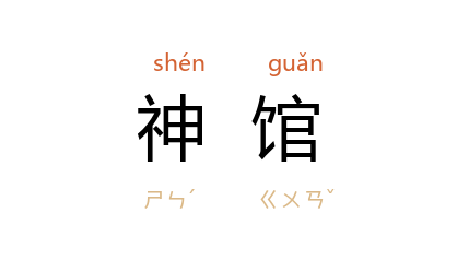 引晋 陆云 《愁霖赋》:“劾 丰隆 於 岳阳 兮,执 赤松 於神馆。”北魏 温子昇 《舜庙碑》:“嶷山 永逝, 湘水 长违,灵宫肃肃,神馆微微。”隋 薛道衡 《老氏碑》:“尊容肃穆,仙衡儼而无声;神馆虚闲,滴沥降而成响。”《云笈七籤》卷九六:“玉清出九天,神馆飞霞外。”明 陈子龙 《秣陵杂诗》:“步櫩通瑶宫,飞臺接神馆。”