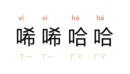 引《红楼梦》第二四回:“只见 秋纹 碧痕 唏唏哈哈的笑着进来。”