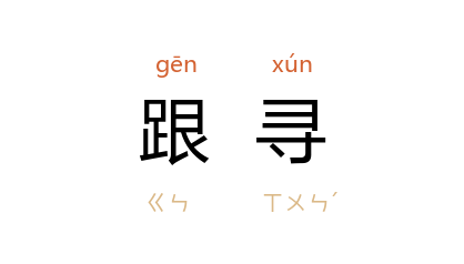 引宋 吴自牧 《梦粱录·顾觅人力》:“如有逃闪,将带东西,有元地脚保识人前去跟寻。”元 白朴 《墙头马上》第四折:“我且换了衣服,跟寻我那 李千金 小姐去。”《西游记》第四十回:“那怪已骋风头,将 唐僧 摄去了,无踪无影,不知摄向何方,无处跟寻。”《儿女英雄传》第十五回:“我一路跟寻到此。”
