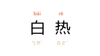 ⒈ 物体受热达到白炽的状态。常用以形容情绪或事态发展到激烈的程度。
