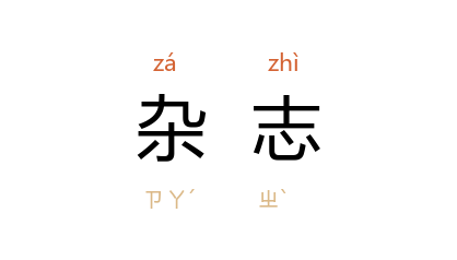 ⒋ 见“杂誌”。亦作“杂志”。即期刊。