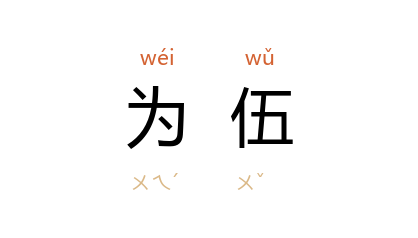 引《史记·卷九二·淮阴侯传》:「信出门,笑曰:『生乃与哙等为伍!』」《儒林外史·第一一回》:「那是懊恼不如竟到述阳,也免得与狱卒为伍。」