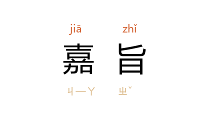 ⒈ 后以“嘉旨”形容酒、肴之美。