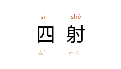 引清 王士禛 《池北偶谈·谈异七·女侠》:“妇人神采四射,其行甚驶。”夏丏尊 叶圣陶 《文心》六:“王先生 的眼光向全堂四射。”权宽浮 《牧场雪莲花》:“在光洁四射的月亮下,我看见她一个人在羊圈跟前弯着腰不知作什么。”
