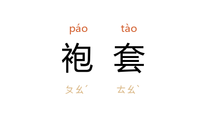 引徐珂 《清稗类钞·服饰·巴图鲁坎肩》:“京师盛行巴图鲁坎肩儿,各部司员见堂官往往服之,上加缨帽,南方呼为一字襟马甲,例须用皮者,衬於袍套之中。”黄远庸 《历历伤心录》:“我们在 蒙古 不觉得,若到 北京 戴起顶子花翎,穿起补服袍套,自己也觉得不好过。”周锡保 《中国古代服饰史》第十四章第二节:“至于袍套,即外褂的形式,在 清 初尚长,至 顺治 之末减短才及于膝,后又长至没髁。”