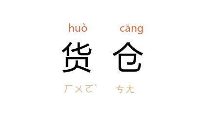 引欧阳山 《柳暗花明》八六:“在大院子的南边,是一个很大的货仓。”金平 《蓝夜》:“在垦荒队货仓似的宿舍,男的、女的,像两类货物被截然的放置在两大溜茅屋,属于个人的仅一张竹床。”