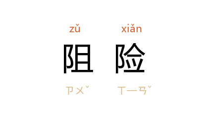 引汉 贾谊 《过秦论下》:“秦 人阻险不守,关梁不闔,长戟不刺,彊弩不射。”宋 乐史 《太平寰宇记·江南西道·零陵县》:“兰陵山,其路阻嶮,絶人行跡。”清 刘大櫆 《游黄山记》:“遡 鸣弦泉 而上,地皆阻险,行者如鼯鼠之穿林。”