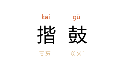 引《新唐书·南蛮传下·骠》:“龟兹 部,有羯鼓、揩鼓、腰鼓、鷄娄鼓、短笛、大小觱篥,拍板,皆八。”宋 沉辽 《龟兹舞》诗:“鸡娄揩鼓旧所识,饶贝流苏分白羽。”宋 叶廷珪 《海录碎事·音乐》:“荅臈鼓……如羯鼓而短,以指揩之,其声甚震,俗谓之揩鼓。”