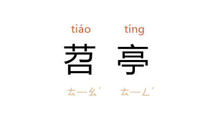 引北魏 郦道元 《水经注·沣水》:“嵩梁山 高峯孤竦,素壁千寻,望之苕亭,有似香炉。”南朝 齐 谢朓 《镜台》诗:“玲瓏类丹槛,苕亭似元闕。”南朝 梁 江淹 《谢法曹惠连赠别》诗:“泛滥北湖游,苕亭南楼期。”