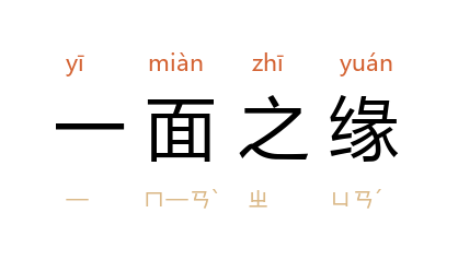 引《红楼梦》第一回:“那僧説:‘若问此物,倒有一面之缘。’説着取出递与 士隐。”乌兰巴干 《草原上的驯马姑娘》:“我和她的相识,就只有这么一面之缘。”叶永烈 《并蒂莲》四:“尽管他与那位 郭小姐 只一面之缘,然而她的形象却象用刀刻下来似的,深深地留在他的脑海之中。”