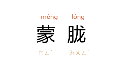 濛朧:模糊不清貌。 唐 王昌龄 《斋心》诗:“女萝覆石壁,溪水幽濛朧。”