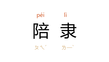 引汉 应劭 《风俗通·过誉·长沙太守汝南郅恽》:“自 君章 之后,转相放式,好干上怵忮,以采名誉,末流论起於爱憎,政在陪隶也。”吴树平 校释:“陪隶,犹陪臺,即奴隶。”三国 魏 曹植 《求自试表》:“昔 毛遂 赵 之陪隶,犹假锥囊之喻,以寤主立功,何况巍巍大 魏 多士之朝,而无慷慨死难之臣乎!”宋 叶适 《上殿札子》:“册命行於至尊,陪隶施於宰辅。”