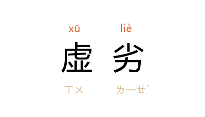 引汉 王充 《论衡·气寿》:“人之禀气,或充实而坚强,或虚劣而软弱。”《后汉书·皇后纪下·顺烈梁皇后》:“詔曰:‘朕素有心下结气,从閒以来,加以浮肿……私自忖度,日夜虚劣,不能復与羣公卿士共相终竟。’”晋 王羲之 《子卿帖》之二:“顷日了不得食,至为虚劣,力及数字。”唐 白居易 《答故人》诗:“顾惭虚劣姿,所得亦已多。”