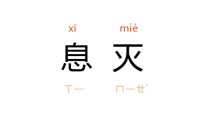 引唐 薛用弱 《集异记·平等阁》:“及烟焰息灭,启鑪之后,其像无成。”清 刘大櫆 《慎始》:“春秋、战国 之间,尝有任侠姦人矣……然数十百年之后,息灭消亡,无復 聂政、荆軻 之餘韵者,此岂待朝廷之禁令诛絶哉!”