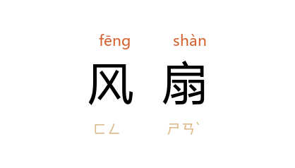 ⒈ 夏日袪暑的用具。古代以布幅做成,用人力牵挽;现在已改用电力转动扇叶生风。