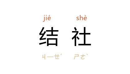 ⒈ 多数人为达成特定的目的,而依一定的规章、固定的组织,所组成的社会团体。结社一般可分为政治结社、公共事务结社及秘密结社三种。