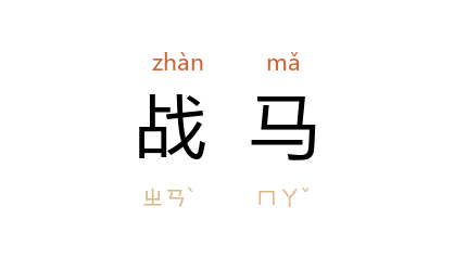 引北周 庾信 《见征客始还遇猎》诗:“犹言乘战马,未得解戎衣。”元 尚仲贤 《三夺槊》第二折:“土培损金锁甲,尘昧了锦征袍,空餵得那疋战马咆哮。”田国浩 《六月雪》:“战马在嘶叫,啦啦队在前呼后应。”