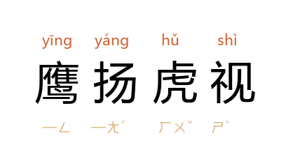 ⒈ 如鹰飞扬,似虎雄视。形容威武奋勇。