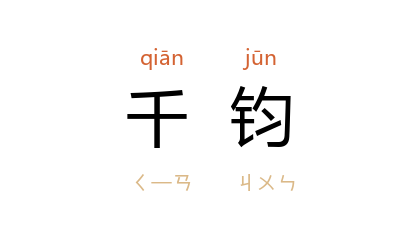 ⒈ 三十斤为一钧,千钧即三万斤。常用来形容器物之重或力量之大。