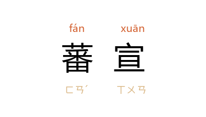 ⒈ 即藩垣。蕃,通“藩”。宣,通“垣”。本指藩篱与垣墙。引申为藩屏护卫。语本《诗·大雅·崧高》:“四国于蕃,四方于宣。”