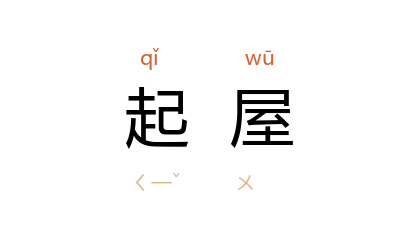 引《汉书·郊祀志下》:“粤 俗,有火灾,復起屋,必以大,用胜服之。”《晋书·虞溥传》:“时祭酒求更起屋行礼。 溥 曰:‘君子行礼,无常处也,故 孔子 射於 矍相 之圃,而行礼於大树之下。况今学庭庠序,高堂显敞乎!’”明 朱国桢 《涌幢小品·番族》:“在境上,建寺起屋,纳妻妾,酗淫赌博,靡所不至。”