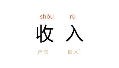 英语to take in, income, revenue, CL:筆|笔[bi3],個|个[ge4]