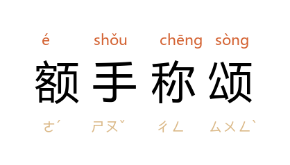 引《野叟曝言》第五七回:“须臾, 任公 等喜孜孜的陆续出来,诉説所以,没一个不咋舌惊叹,如醉如梦,额手称颂,欣喜欲狂。”徐珂 《清稗类钞·宫闱·孝贞后娴礼法》:“然至军国大计所关,及用人之尤重大者, 孝贞 偶行一事,人皆额手称颂。”