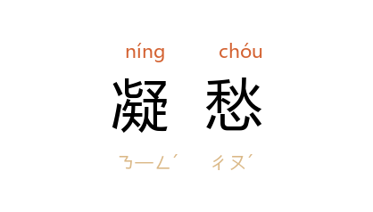 引唐 李咸用 《同友人秋日登庾楼》诗:“六代 风光无问处,九条烟水但凝愁。”宋 柳永 《八声甘州》词:“争知我,倚阑干处,正恁凝愁。”宋 吕渭老 《千秋岁》词:“凝愁情不展,宿酒风还醒。”