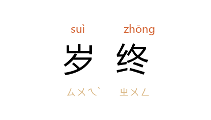 引《周礼·天官·冢宰》:“岁终则攷六乡之治,以詔废置。”孙诒让 正义:“岁终者谓夏正建丑之月。”《后汉书·礼仪志中》:“季冬之月,星迴岁终。”《宋书·百官志上》:“太史令,一人,丞一人。掌三辰时日祥瑞妖灾,岁终则奏新历。”《水浒传》第七一回:“一向无事,渐近岁终。”