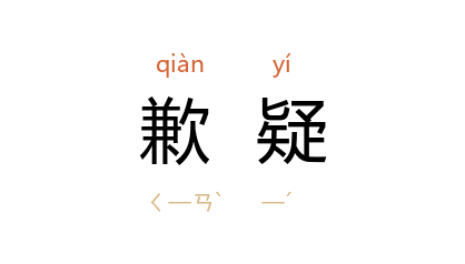 引《续古文苑·秦平阳斤铭》:“乃詔丞相 状 綰,法度量则不壹、歉疑者,皆明壹之。”清 王筠 《说文句读·欠部》“歉”:“秦 权、 秦 斤、 秦 量铭,嫌疑并作歉疑。”