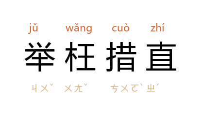 引语出《论语·为政》:“举枉错诸直,则民不服。”邢昺 疏:“举邪枉之人用之,废置诸正直之人。”《后汉书·逸民传·梁鸿》:“竞举枉兮措直,咸先佞兮唌唌。”唐 元稹 《翰林承旨学士记》:“以君父之遇若如是,而犹举枉措直可乎哉?”