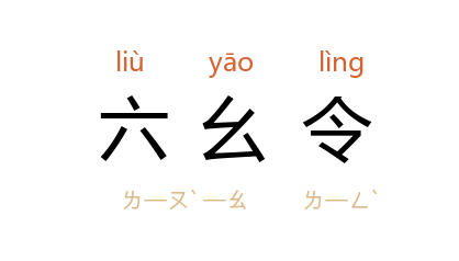 ⒉ 曲牌名。南北曲均有此曲牌。南曲属仙吕入双调,字数与词牌不同,用作过曲。北曲属黄钟宫者,字数与词牌或南曲都不同;属仙吕宫者,字数与词牌相同,句读略异;都用在套曲中。京剧亦有《六幺令》,系吹打曲牌,无唱词,多用于官员上朝、回府时。