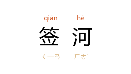 引《宋史·河渠志二》:“故道堙而高,水不得下,议者欲自 夏津县 东开签河入 董固 以护旧 河,袤七十里九十步。”《宋史·河渠志四》:“都水监言:惠民河 修签河次下硬堰毕工。”