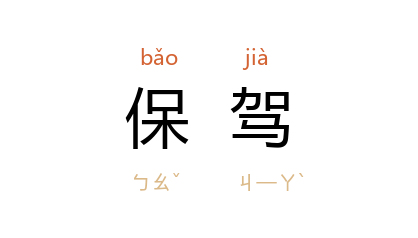 ⒉ 泛指保护。如:天这么黑,你一个人去,不要我们保驾么?
