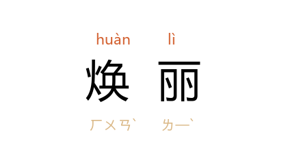 引五代 王定保 《唐摭言·设奇沽誉》:“復易之红锦,尤加焕丽,众莫测矣。”宋 胡仔 《苕溪渔隐丛话后集·本朝杂记上》:“王初寮 作《宣德门成赏功制》云:‘阁道穹隆,两观搴翔於霄汉;闕庭焕丽,十户开闔於阴阳。’”清 谭献 《<古诗录>序》:“其根也朴,其枝叶以焕丽,其合者皆风諭之遗也。”