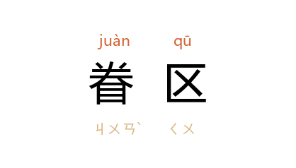 ⒈ 由军方与地方单位划定地区兴建住宅,分配给官兵配偶或直系血亲居住,并附设有眷舍业务的管理机构,此地区称为眷区。