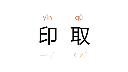 引瞿秋白 《饿乡纪程》三:“我只须能尽量享用,印取他的‘美’意,自慰偏枯悲涩的心怀。”瞿秋白 《<赤都心史>序》:“我愿意突出个性,印取自己的思潮,所以杂集随感录,且要试摹‘社会的画稿’。”