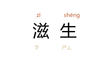 例如:「滋生蚊蝇」、「树枝上又滋生了许多新芽。」